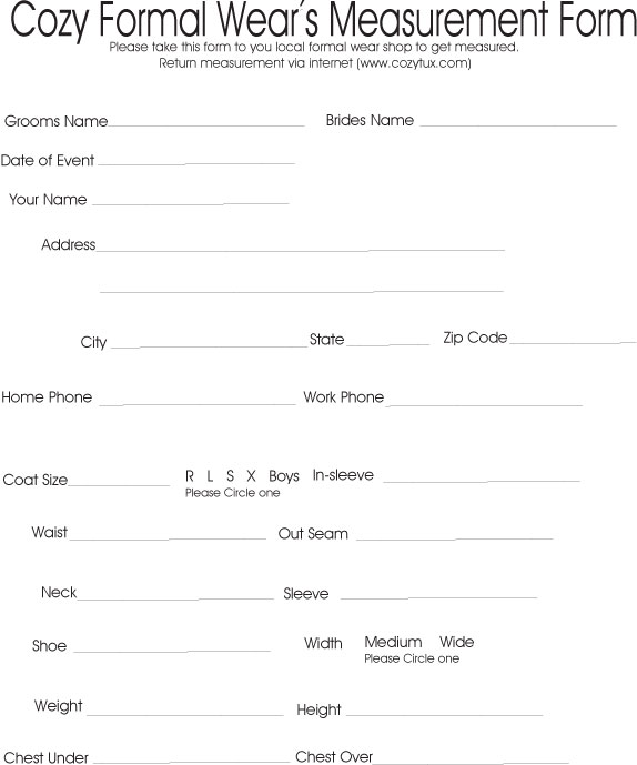 For a printable version to bring to your local tuxedo shop click here.